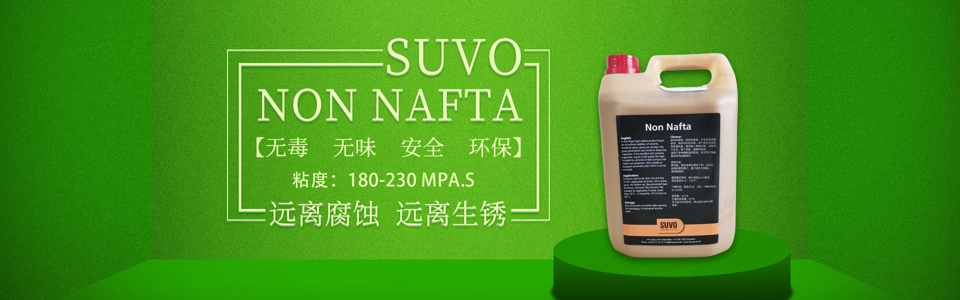 SUVO Non Nafta 是一款無毒、無味、安全、環(huán)保的油基/蠟基防銹產(chǎn)品,不含溶劑,內(nèi)含超強的防腐劑。 涂刷本產(chǎn)品后,會在被保護的工件表面形成一層80-100微米厚的油脂、蠟基保護膜,保護金屬產(chǎn)品免受惡劣環(huán)境侵害,遠(yuǎn)離腐蝕,遠(yuǎn)離生銹。 產(chǎn)品適合于鋼鐵制品在陸地存儲或海上運輸過程中的長期防腐,防銹。本產(chǎn)品非常易于被石油精/煤油清洗劑清除,清洗過程不損傷工件表面,不污染施工環(huán)境。